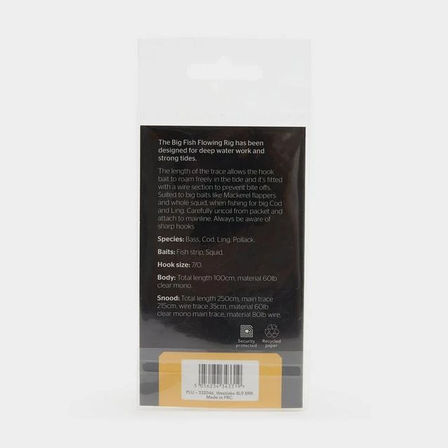The 1 Hook Big Fish Flow Rig from Westlake has a trace length that allows the hook bait to roam freely in the tide. As well, itโs fitted with a wire section to prevent bite offs. Itโs ideal for big baits like Mackerel, Flappers and whole Squid, when fishing for big Cod and Ling.
